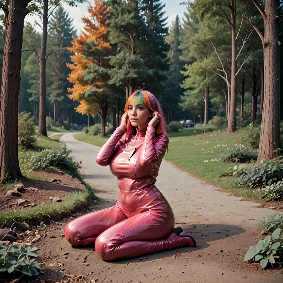 As Clara began to walk, the catsuit’s colors seemed to respond to the environment around her. The deeper she ventured into the woods, the more vibrant they became—a symphony of greens and golds that seemed to blend with the natural world itself. It was as if the catsuit had become a part of the forest, reflecting its essence in every shimmering hue.