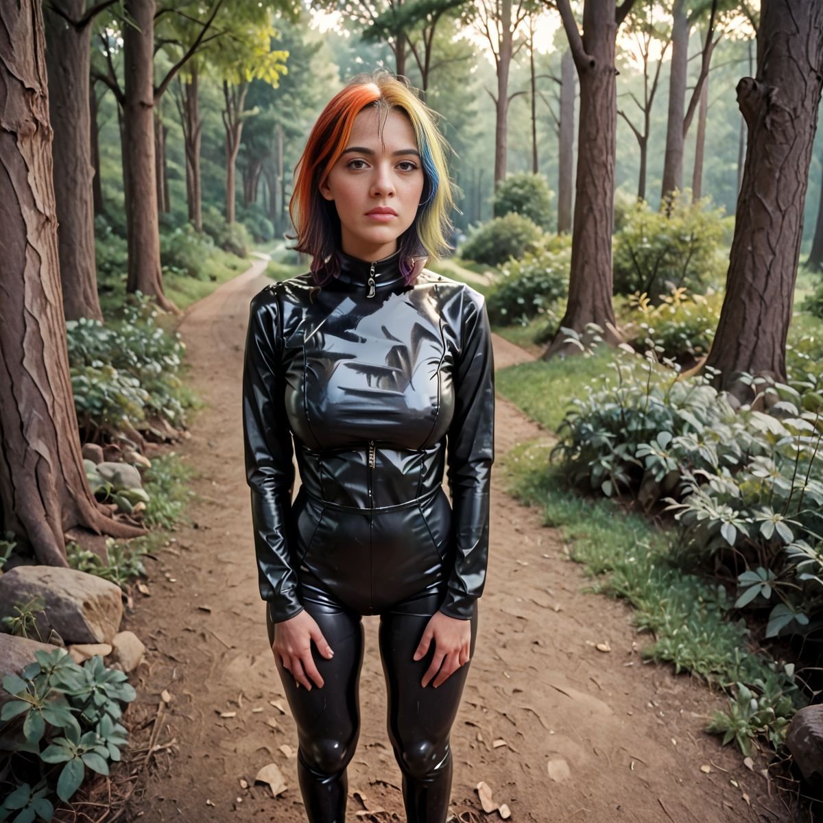 In that quiet, introspective space, Clara realized something profound. She had always been different, her catsuit a constant reminder of her uniqueness. But here, in this hidden glade, she didn’t need to hide who she was. The woods accepted her, wrapping around her like a warm embrace.
