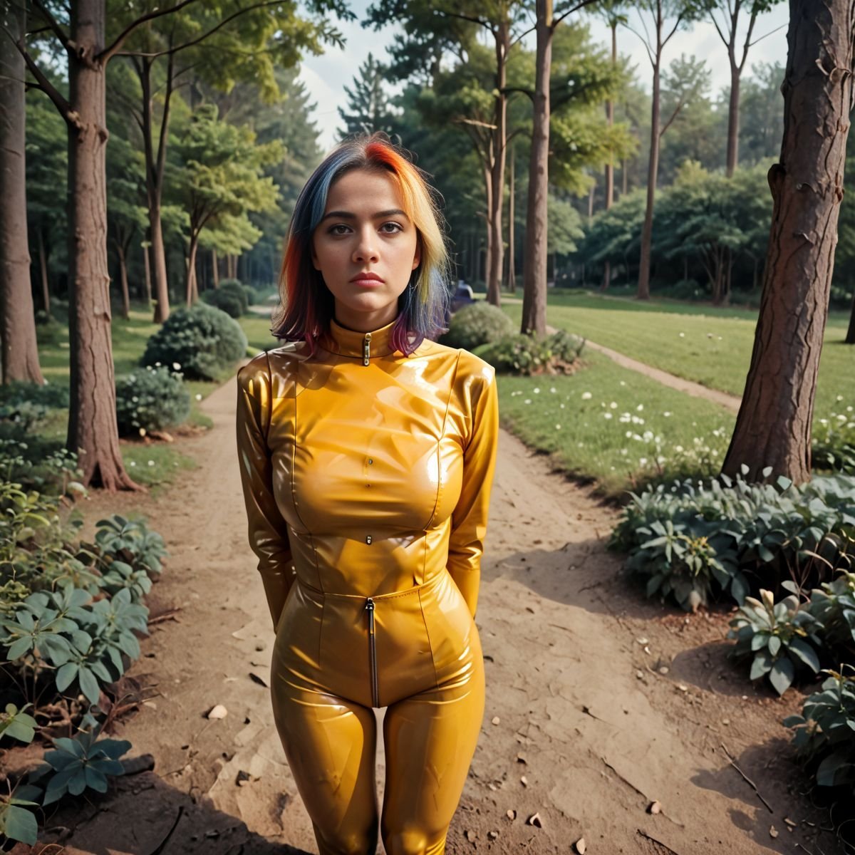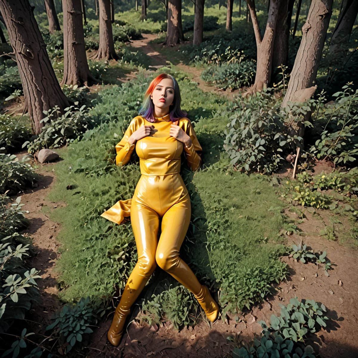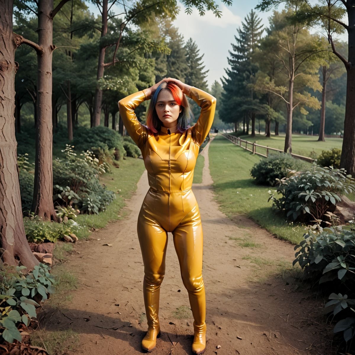As Clara began to walk, the catsuit’s colors seemed to respond to the environment around her. The deeper she ventured into the woods, the more vibrant they became—a symphony of greens and golds that seemed to blend with the natural world itself. It was as if the catsuit had become a part of the forest, reflecting its essence in every shimmering hue.