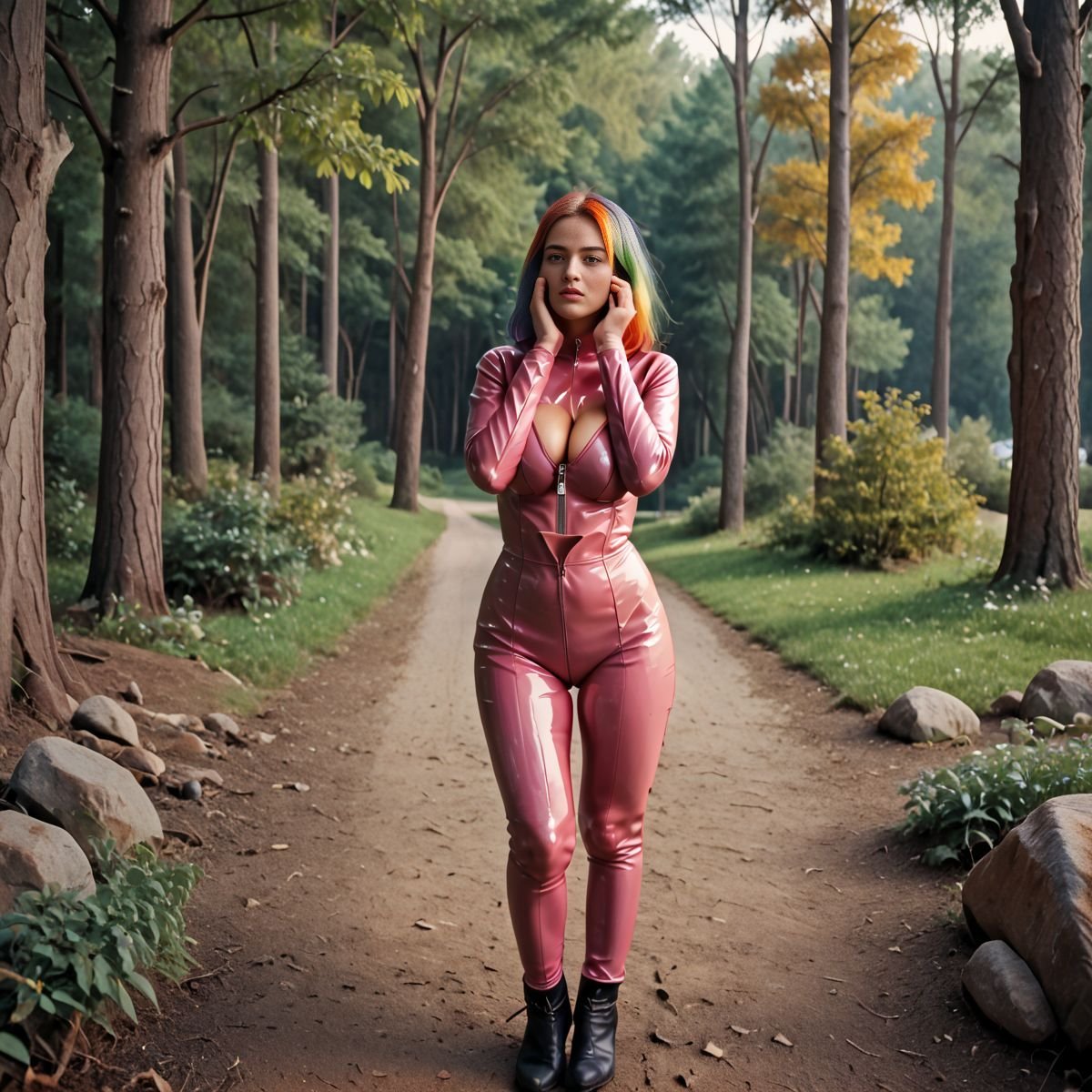 In that quiet, introspective space, Clara realized something profound. She had always been different, her catsuit a constant reminder of her uniqueness. But here, in this hidden glade, she didn’t need to hide who she was. The woods accepted her, wrapping around her like a warm embrace.