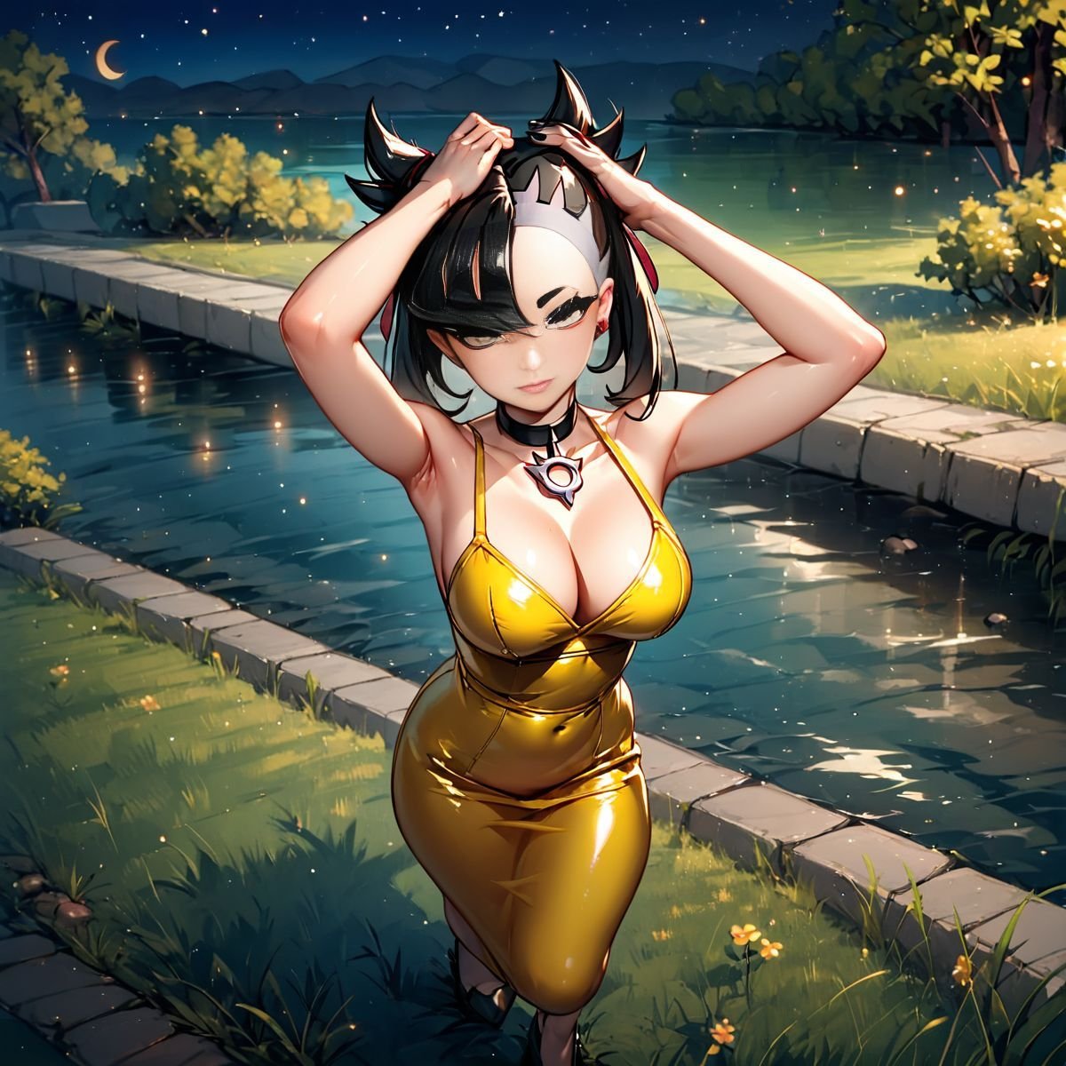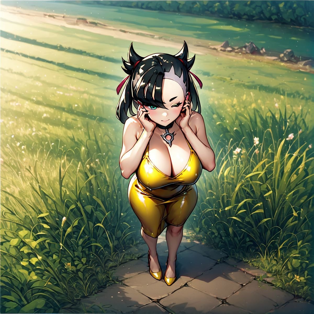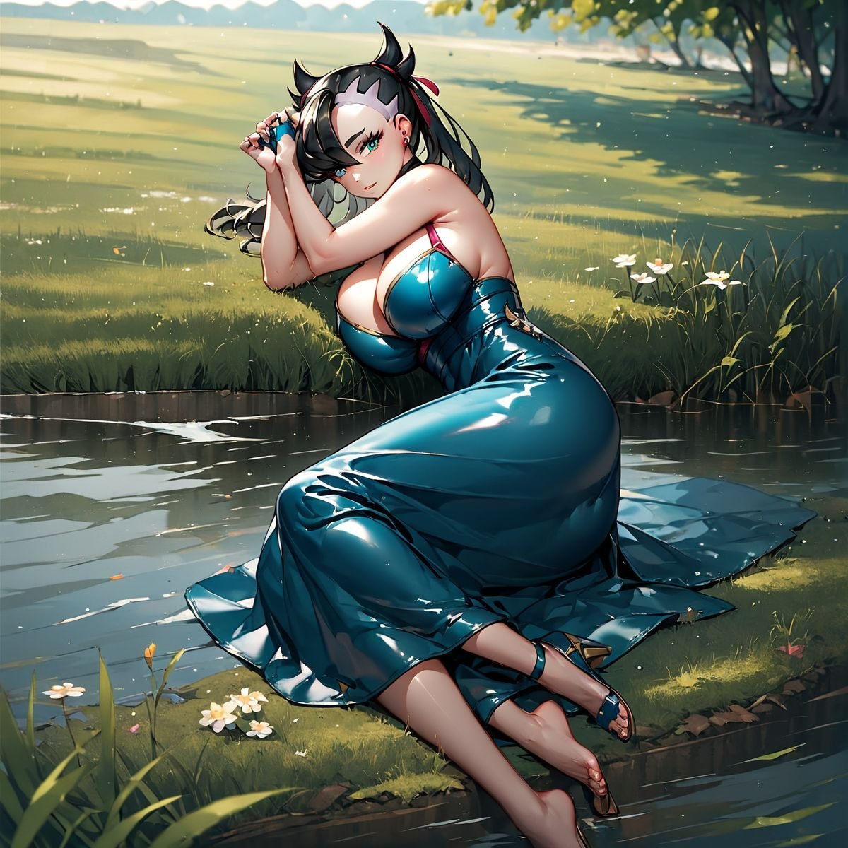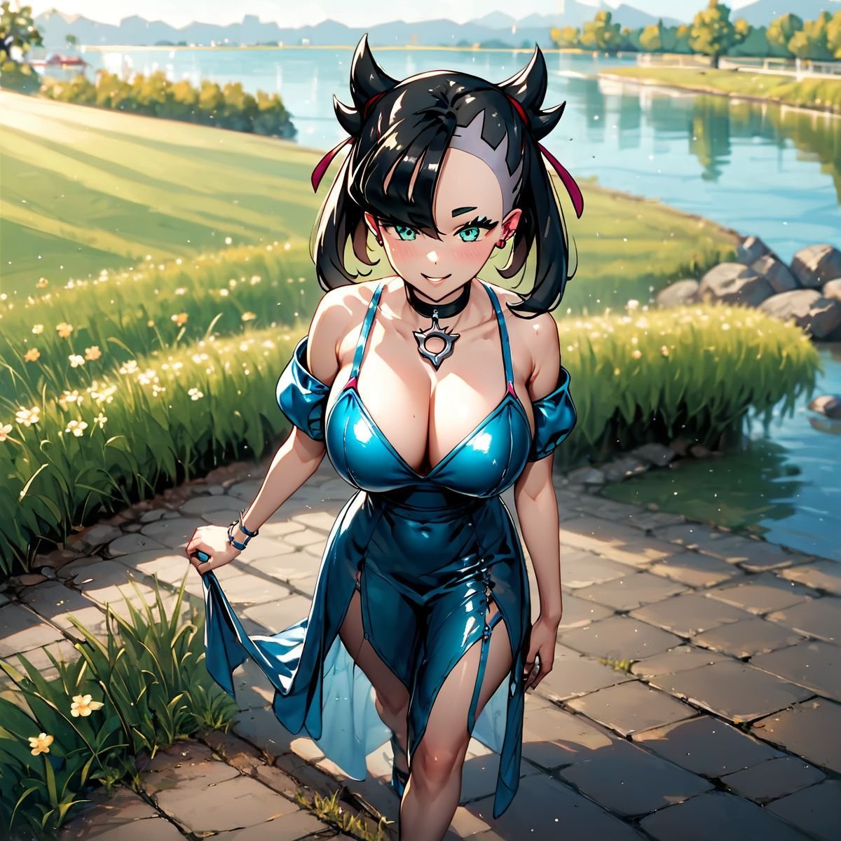 As she walked, Marnie felt a sense of freedom she hadn’t known before. She had always been confident in her appearance, but now it seemed as though the world itself was changed by her presence. The Pokémon that passed by paused to admire her, their eyes widening in awe at the way she carried herself. She didn’t notice them much anyway—her focus was on the feeling of the dress against her skin, the way it moved with her body.