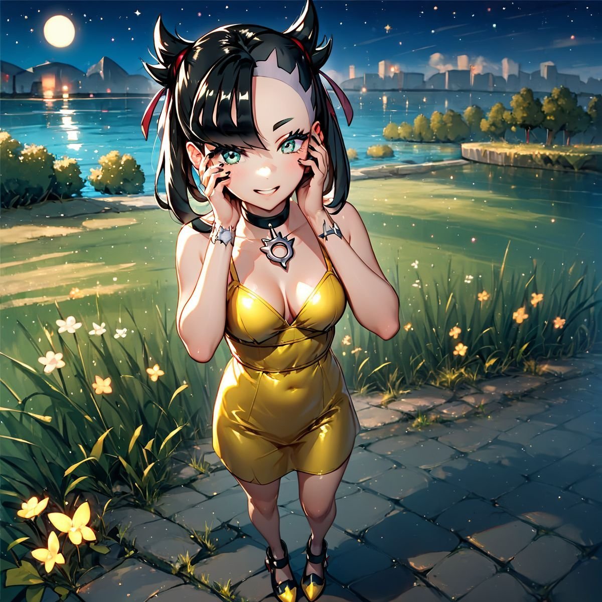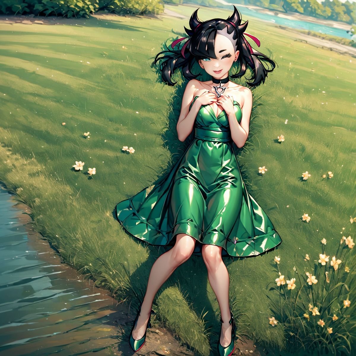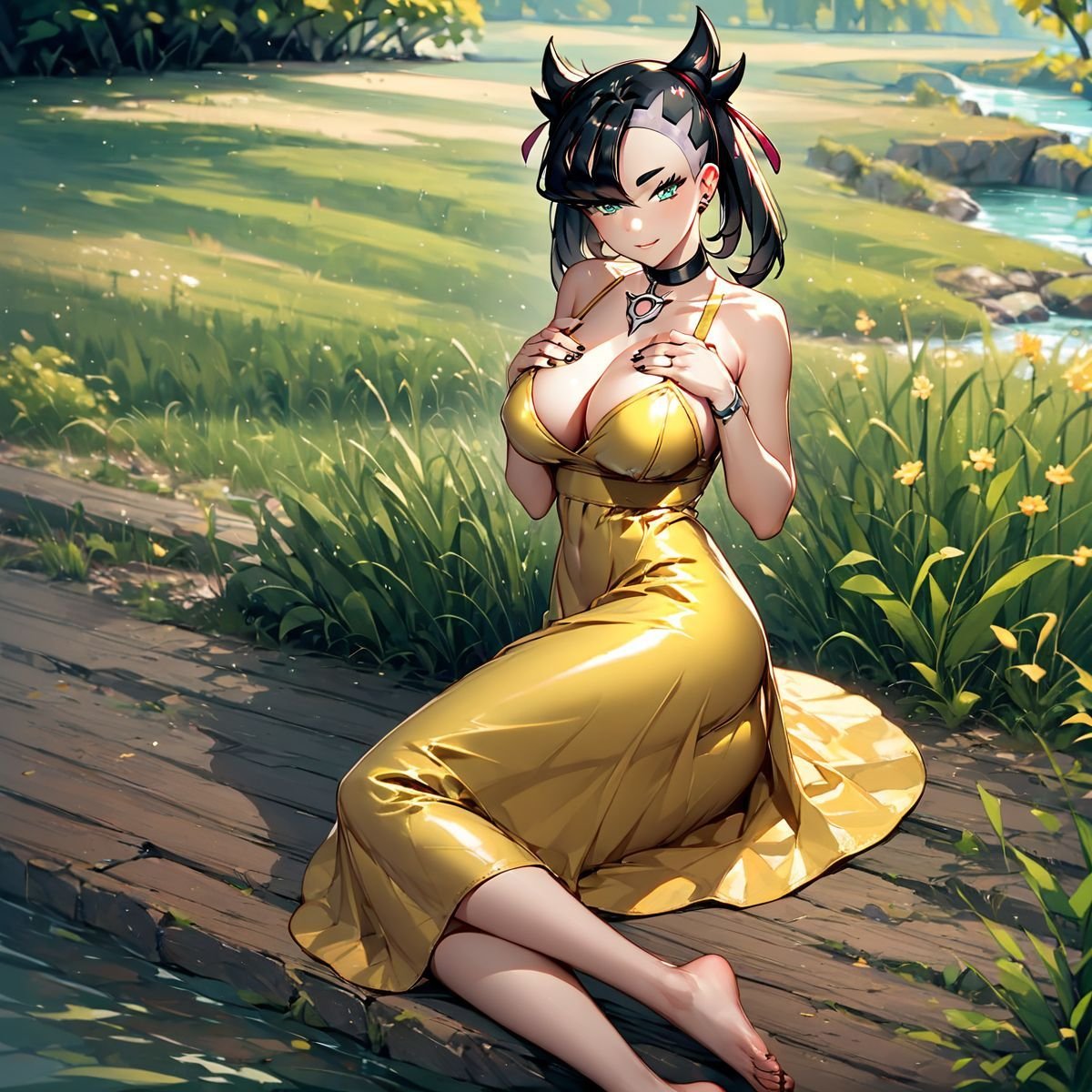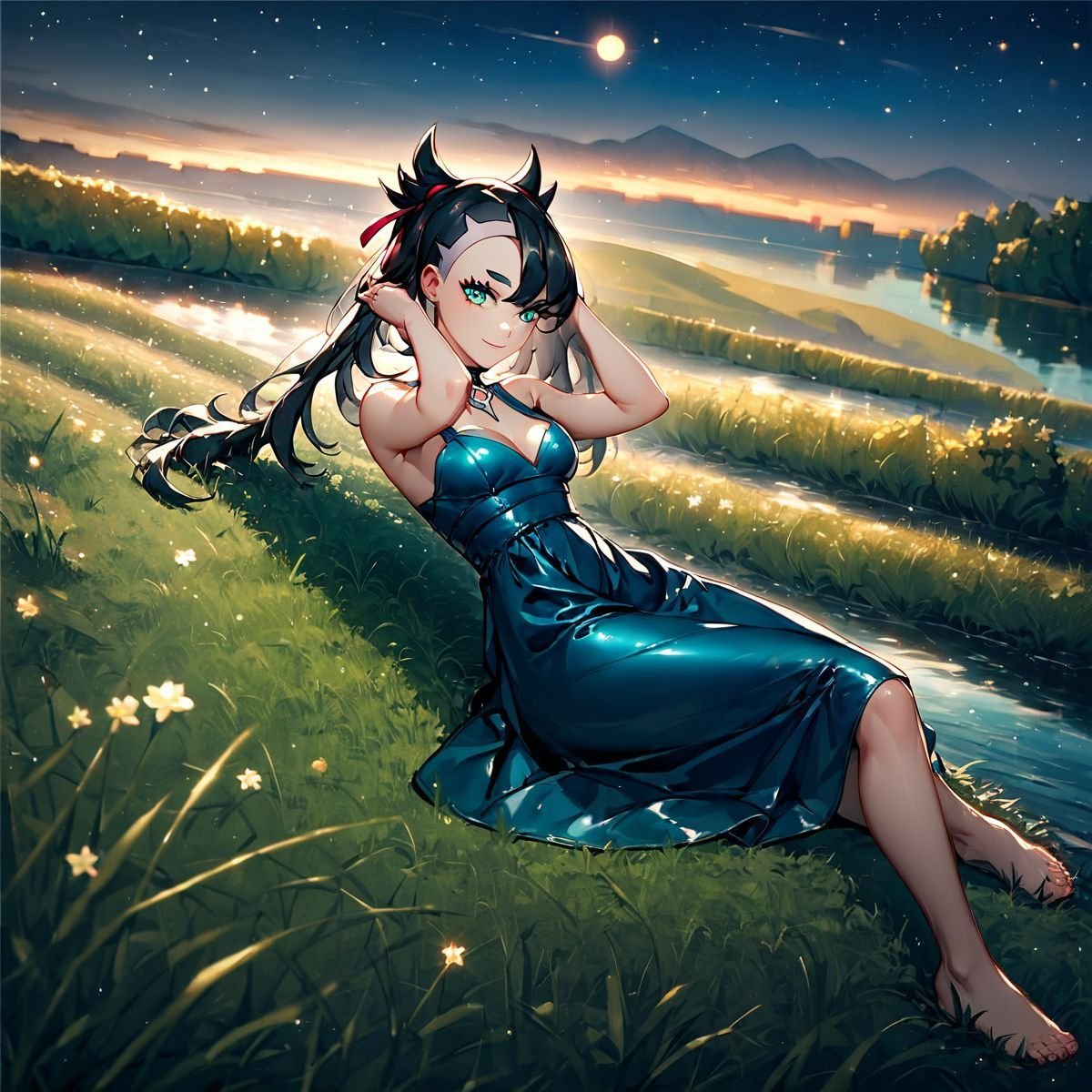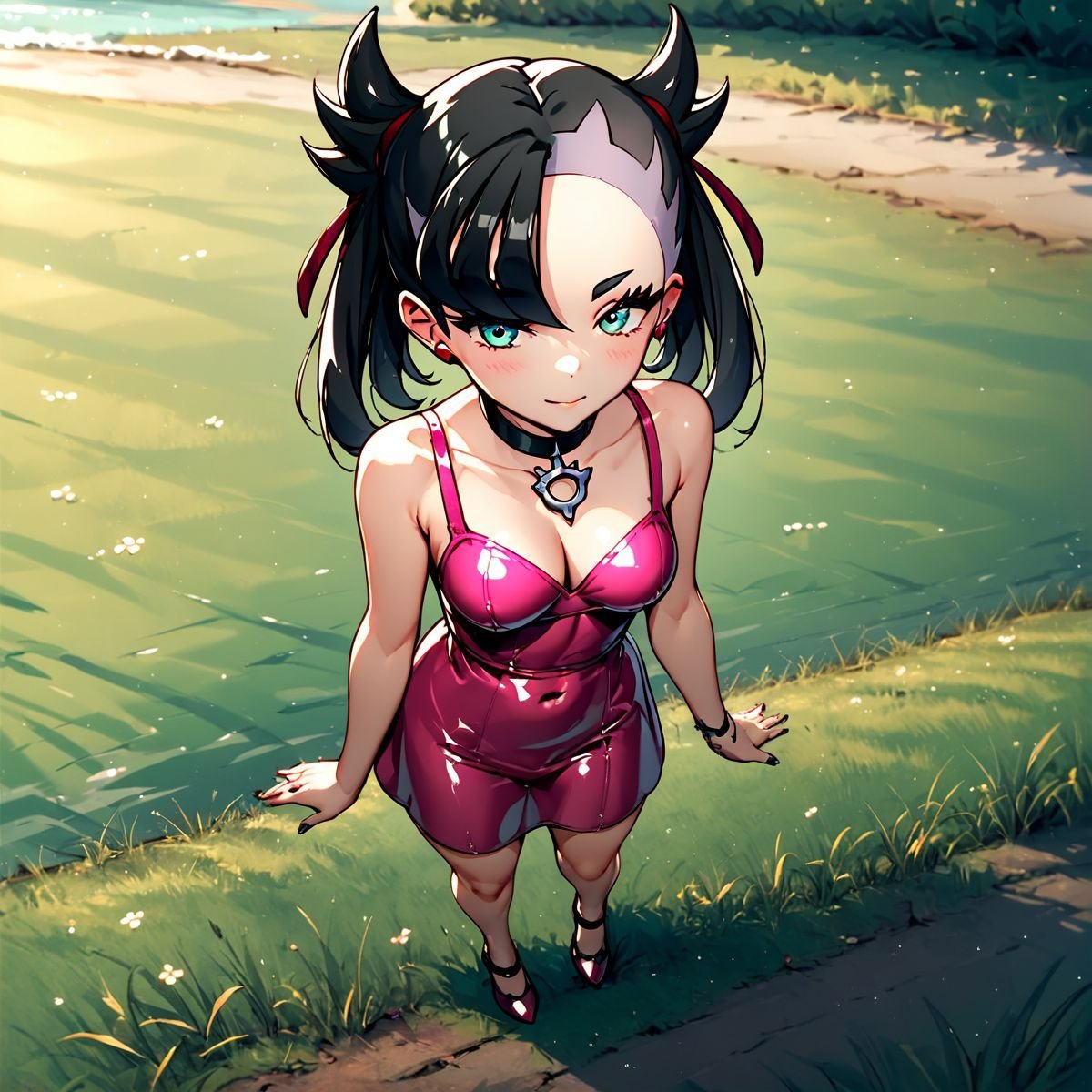 As she walked, Marnie felt a sense of freedom she hadn’t known before. She had always been confident in her appearance, but now it seemed as though the world itself was changed by her presence. The Pokémon that passed by paused to admire her, their eyes widening in awe at the way she carried herself. She didn’t notice them much anyway—her focus was on the feeling of the dress against her skin, the way it moved with her body.