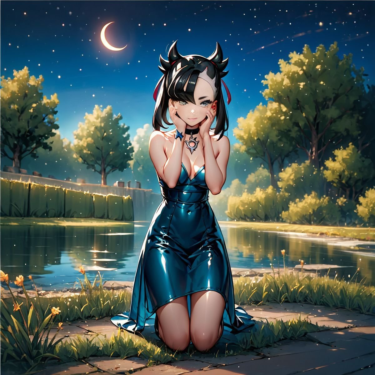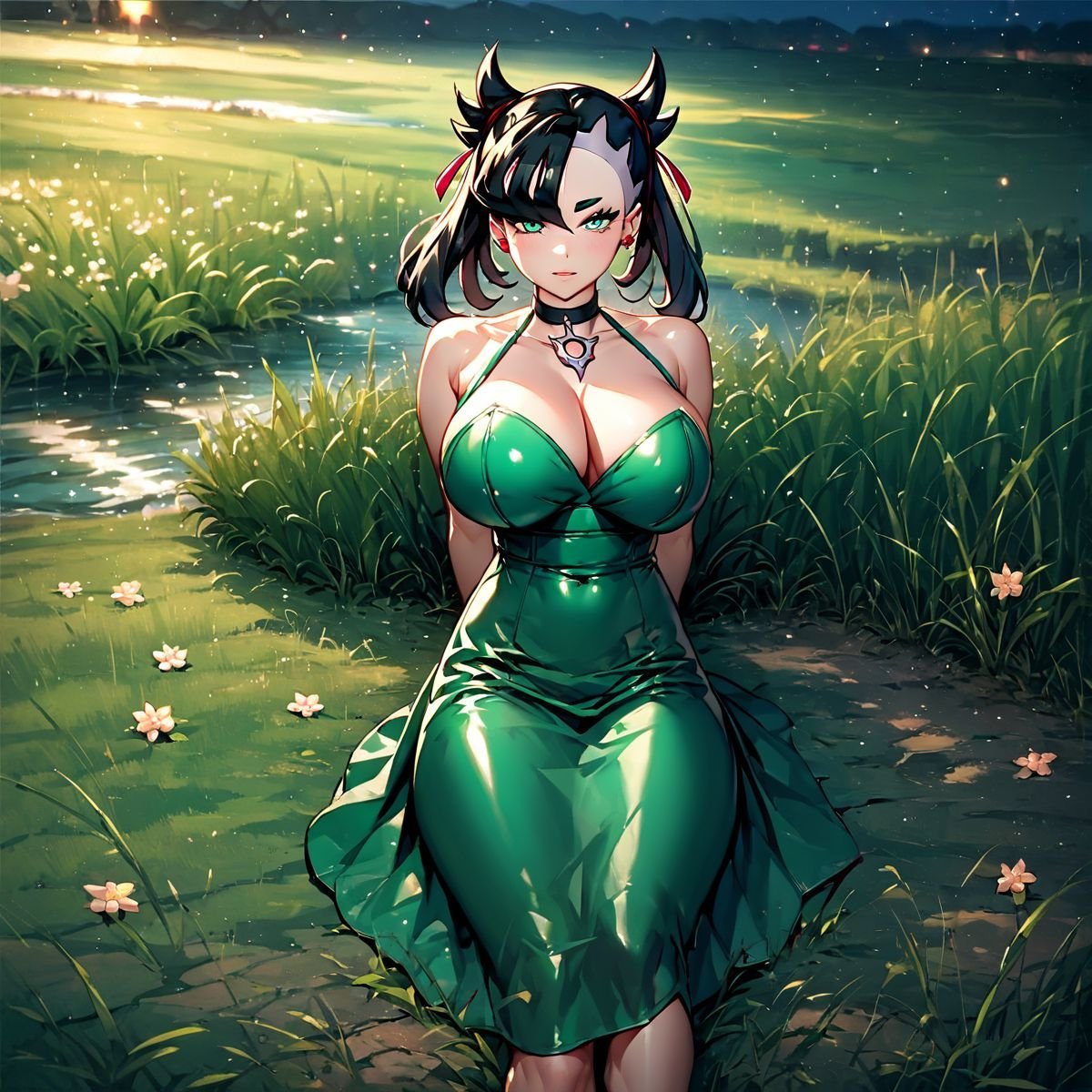 As she walked, Marnie felt a sense of freedom she hadn’t known before. She had always been confident in her appearance, but now it seemed as though the world itself was changed by her presence. The Pokémon that passed by paused to admire her, their eyes widening in awe at the way she carried herself. She didn’t notice them much anyway—her focus was on the feeling of the dress against her skin, the way it moved with her body.
