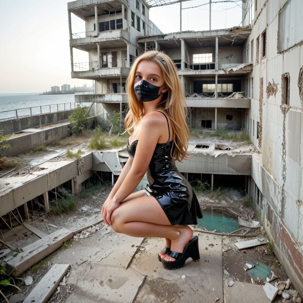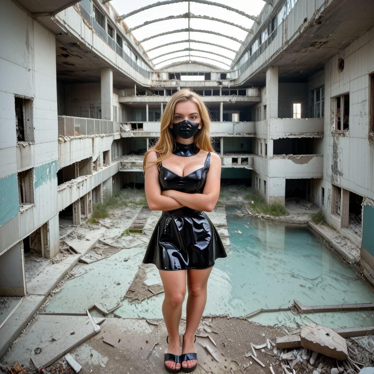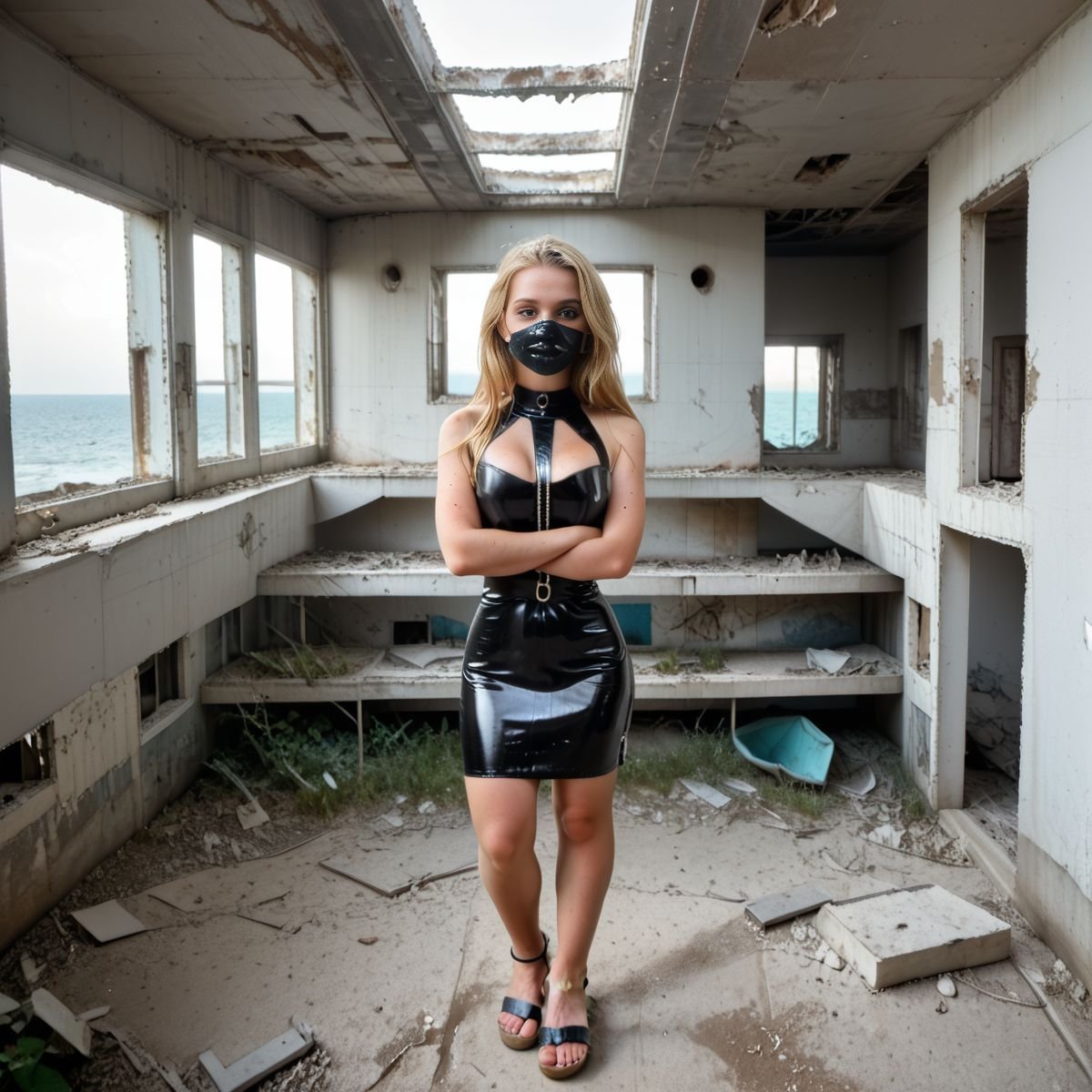 Katie had always loved the abandoned building on the edge of town, its fluted windows like hollow eyes watching over the wild grasses. Today, she decided to explore it in her sexiest latex catsuit, the kind that clung to every curve. With a deep breath, she stepped inside, the door creaking as though it had a voice of its own.