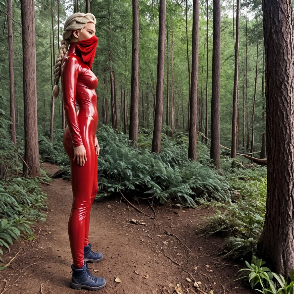 As she walked deeper into the forest, she couldn’t help but feel a sense of freedom. The tightness of the latex against her body felt like a second skin, and she revelled in the sensation of being wrapped up in it. The catsuit was a new purchase, and she had been waiting for the perfect opportunity to wear it.